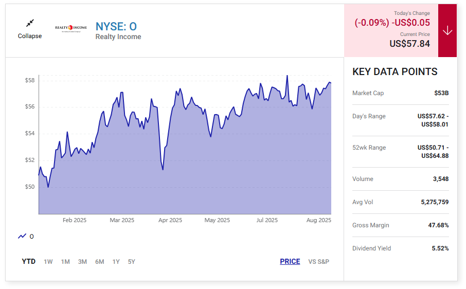 Realty Income은 30년 연속으로 배당금(월 단위로 지급)을 인상했습니다.