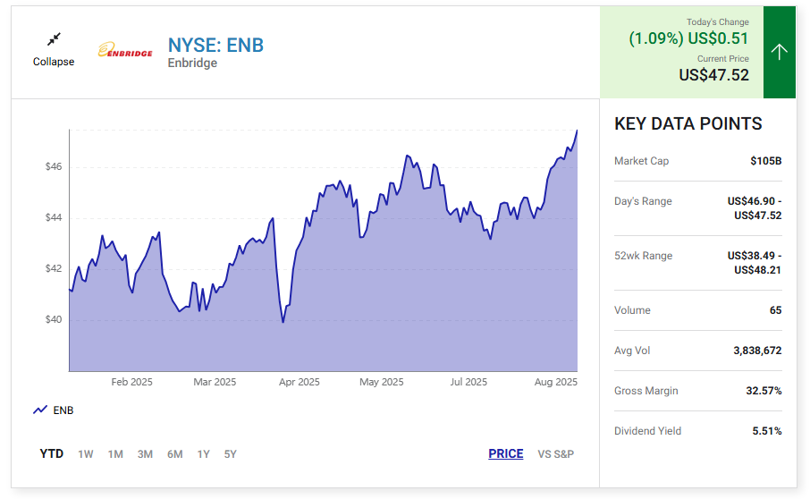 더 높은 배당금을 원한다면 Enbridge(ENB 1.09%)를 확인하세요.