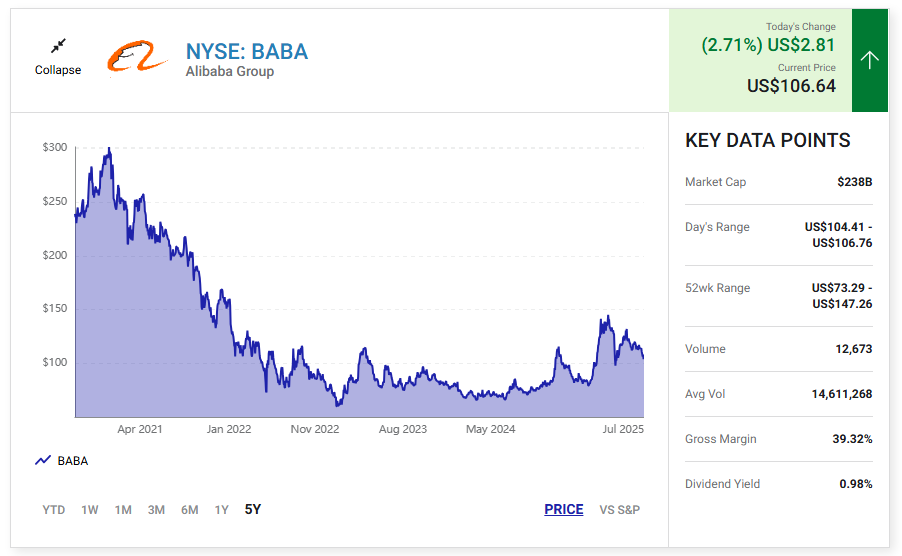 하지만 그 랠리 이후에도 중국 이커머스 및 클라우드 리더의 주가는 2020년 10월 이후 사상 최고치 대비 65% 낮은 수준을 유지하고 있습니다.
