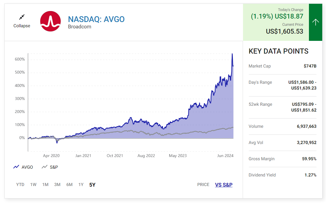 지난 5년 동안 브로드컴은 매출이 126% 증가하여 순이익이 197% 증가하는 등 불똥이 튀었습니다.