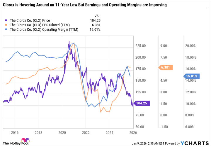 약한 기대치와 Clorox의 주가가 11년 만에 최저치를 기록하고 있는 점을 고려할 때, 투자자들은 다가오는 분기 실적보다는 향후 몇 년 동안 Clorox의 방향에 집중해야 합니다.