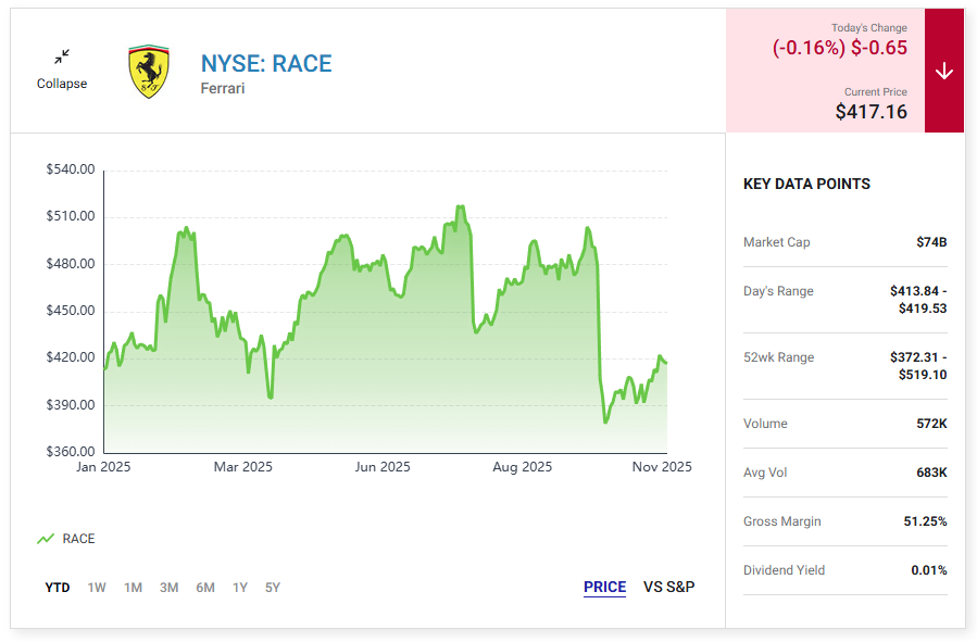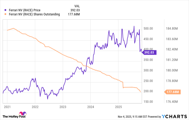투자자들은 지난 한 달 동안 주가가 약 17% 하락한 후 페라리 Ferrari (RACE 0.16%)의 주식을 할인된 가격에 매입할 수 있는 드문 기회를 갖게 되었습니다.