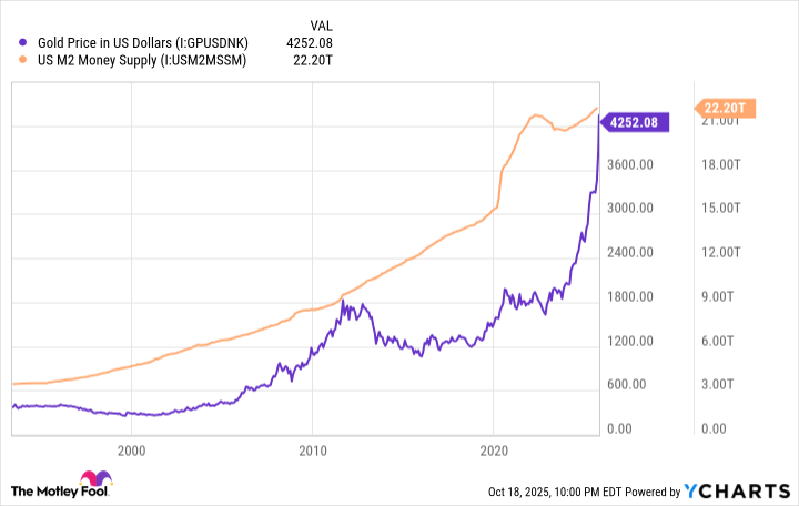 금은 그 이후로 계속 상승 추세를 보이고 있으며, 투자자들은 미국 정부의 막대한 예산 적자를 고려할 때 통화 공급 성장이 가속화될 가능성을 감지하고 있습니다.