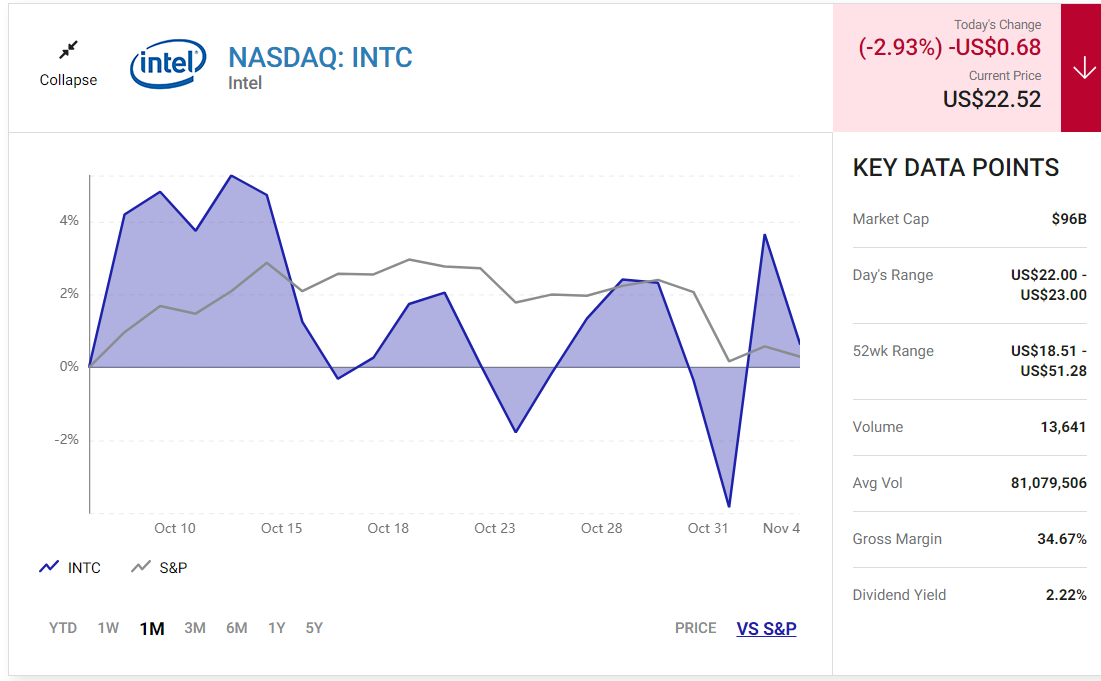 어려운 PC 시장, 매출 감소, 타사 파운드리가 되려는 인텔의 계획이 예상보다 오래 걸리는 가운데 투자자들은 턴어라운드를 포기한 것으로 보입니다.