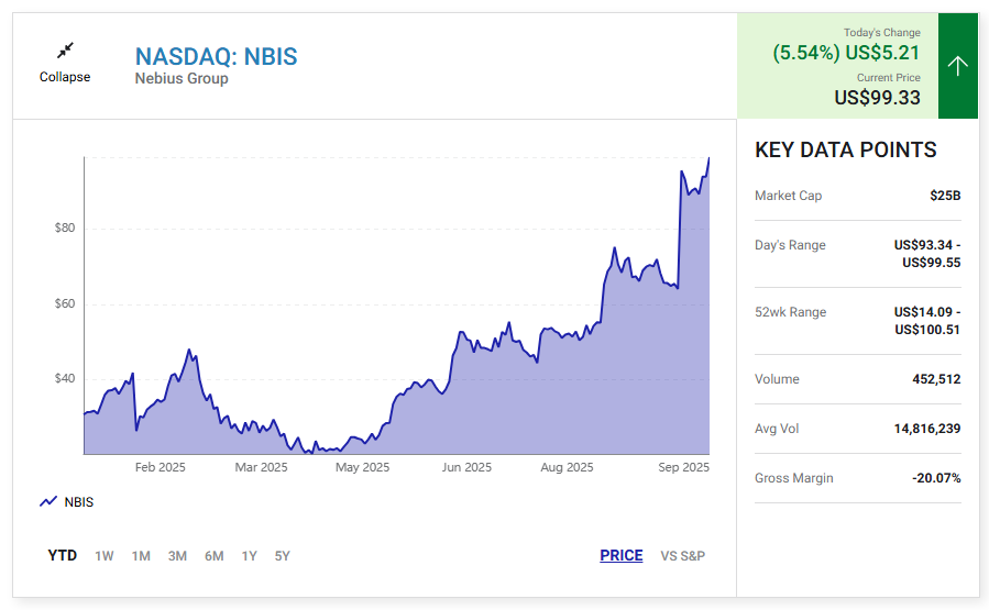 이러한 성과로 Nebius는 2025년 가장 실적이 좋은 대형주 5곳 중 하나가 되었습니다.