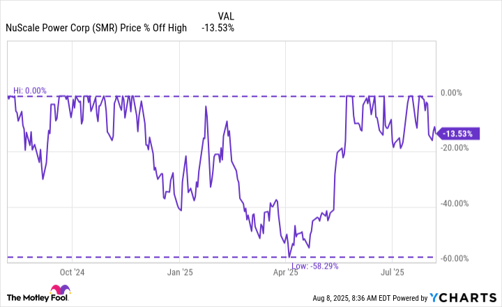 NuScale Power(SMR -2.41%)의 주가는 지난 52주 동안 주당 약 7달러까지 떨어졌습니다.