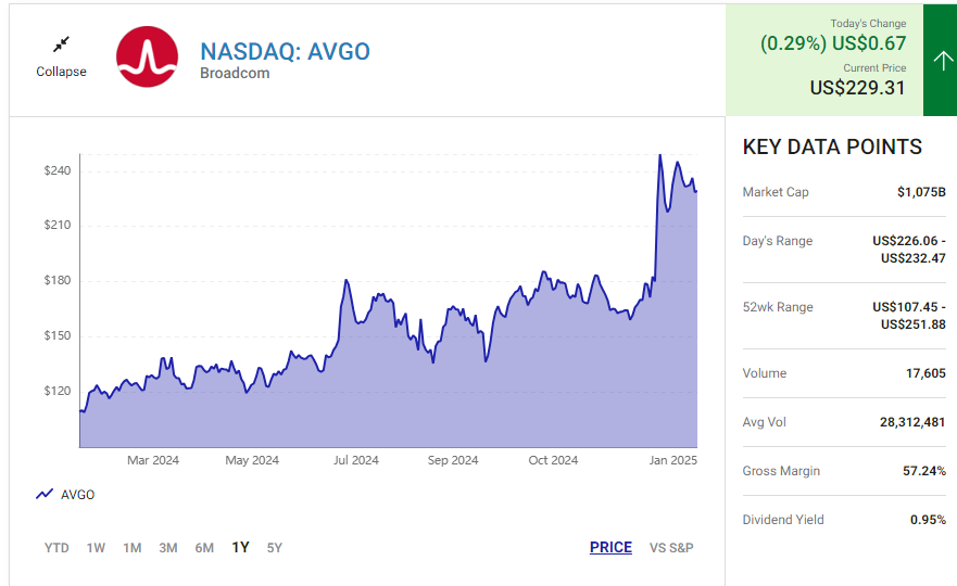 엔비디아는 작년에 171% 상승했고, 브로드컴은 107% 이상 상승했습니다.