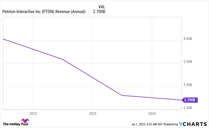 그러나 펠로톤의 매출은 2022 회계연도에 35억 달러로 감소한 후 2023 회계연도에는 28억 달러로 감소했고, 2024 회계연도에는 27억 달러로 다시 감소했습니다.