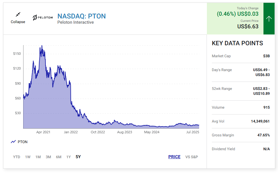 펠로톤 주가는 사상 최고치 대비 95% 하락했지만, 그렇다고 해서 반드시 저렴하다는 의미는 아닙니다.
