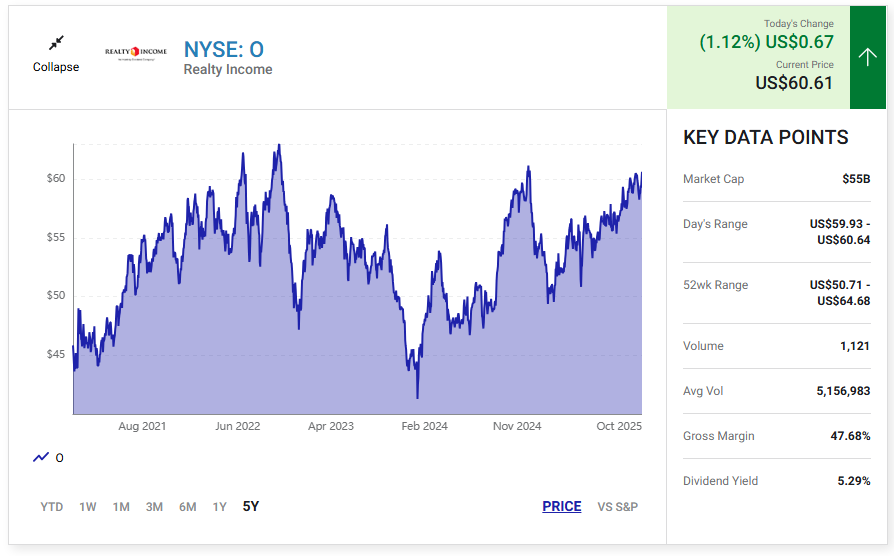 Realty Income (O 1.12%)이 바로 그렇게 할 수 있는 방법입니다.