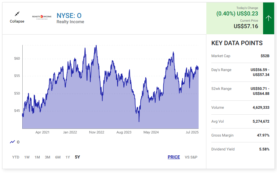 매월 지급되는 고수익 주식을 찾고 있다면 Realty Income이 목록의 최상위에 있어야 합니다.