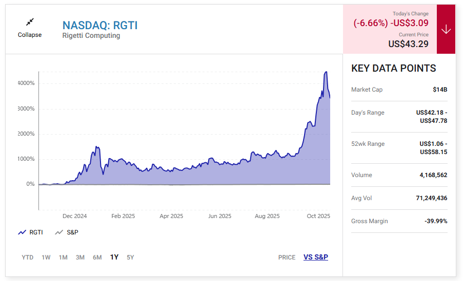 투자자들은 양자 혁명을 위해 포트폴리오를 포지셔닝하기 위해 지난 한 해 동안 리게티 주가를 4,800% 급등시켰습니다.