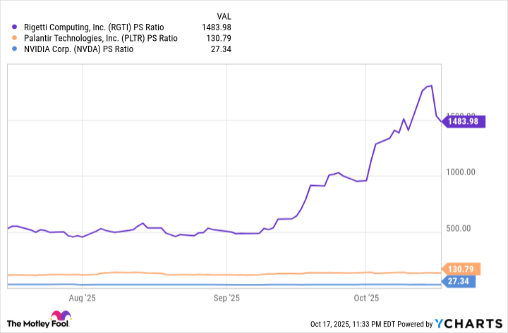 그 결과 리게티 주식은 1,480의 터무니없는 주가수익비율(P/S)로 거래되고 있습니다.