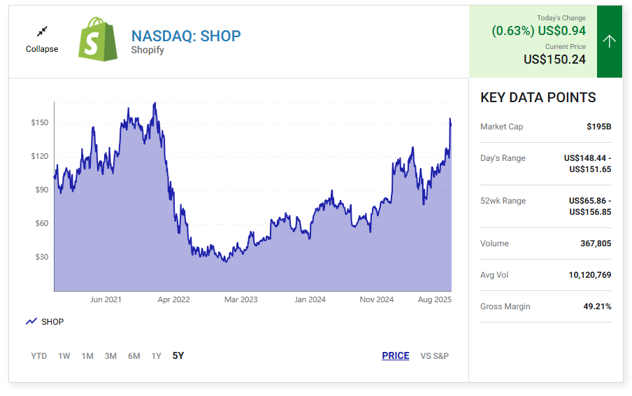 이 주식은 중소기업과 대기업을 위한 선도적인 이커머스 솔루션 플랫폼으로 성장하여 온라인 스토어를 구축하고 결제를 수락하는 데 필요한 거의 모든 것을 제공하고 있습니다.