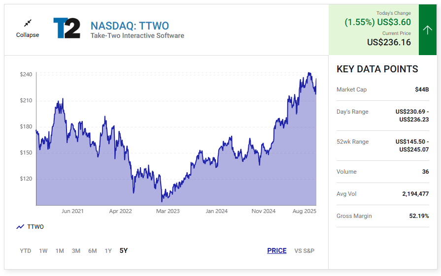 이 타이틀의 인기가 높아짐에 따라 2026년 5월 26일로 예상되는 내년 그랜드 테프트 오토 VI 출시를 앞두고 주가가 계속 상승하는 이유도 설명할 수 있습니다.