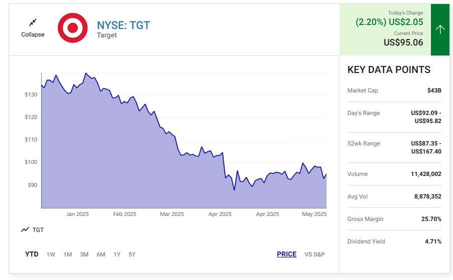 아래 차트에서 볼 수 있듯이 Target은 상승세를 유지하고 있습니다.