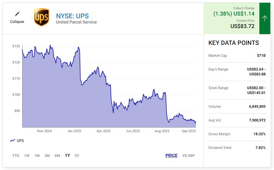 월스트리트가 나무가 하늘로 자라지 않는다는 사실을 다시 한번 깨달았을 때 UPS의 주가는 폭락했습니다.